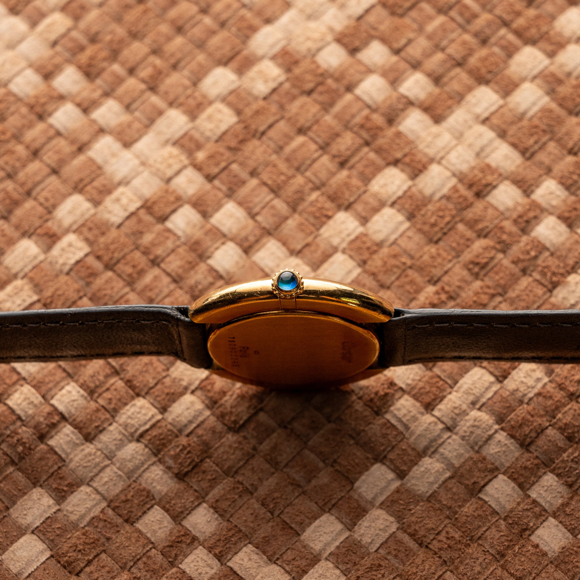 This Cartier Vendôme Ronde in solid 18K yellow gold is an elegant example of Cartier’s timeless Parisian design. The smooth, perfectly proportioned circular case measures 30 mm, offering a refined presence suitable for both men’s and ladies’ wrists. The original white dial features classic black Roman numerals, chemin de fer minute track, and blued sword hands—hallmark traits of Cartier’s signature aesthetic. The original crown is set with the iconic blue cabochon. Powered by a Cartier signed manual-wind movement based on ETA/Piguet, the watch is in excellent cosmetic and mechanical condition. An iconic and sophisticated Cartier timepiece, ideal for collectors and connoisseurs of classic French elegance.