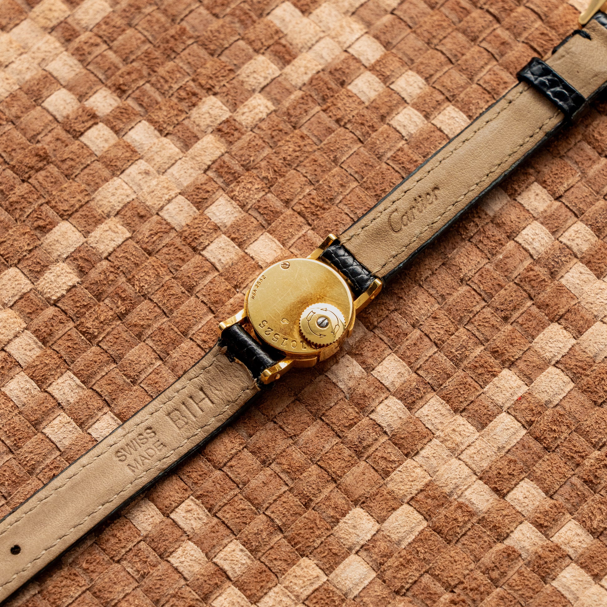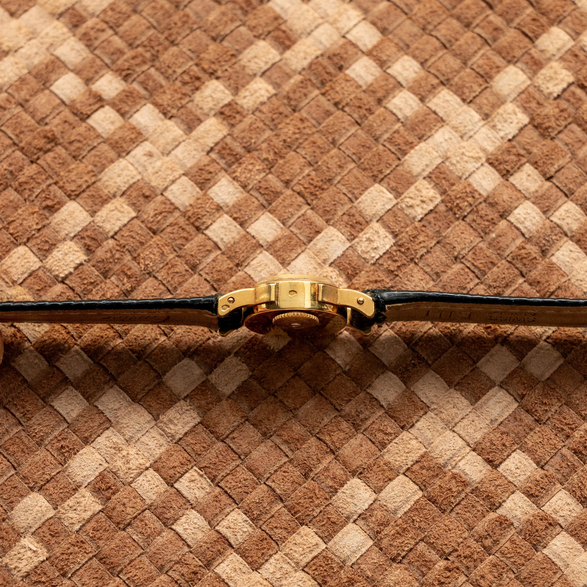 This Cartier Duoplan from the early 1940s is a fine example of the historic collaboration between Cartier and Jaeger-LeCoultre, one of the most important partnerships in 20th-century Swiss watchmaking. The watch is powered by the renowned Duoplan caliber, engineered to deliver reliability and precision within an exceptionally compact construction. The approximately 16 mm 18K yellow gold case features clearly visible hallmarks and proportions fully consistent with the aesthetic standards of the period. The Cartier-signed dial, with Arabic numerals, offers balanced readability and reflects the restrained elegance characteristic of Cartier’s production during the 1940s. Preserved in excellent condition, this watch stands out as a highly collectible vintage timepiece, valued for its historical significance, technical ingenuity, and overall authenticity.